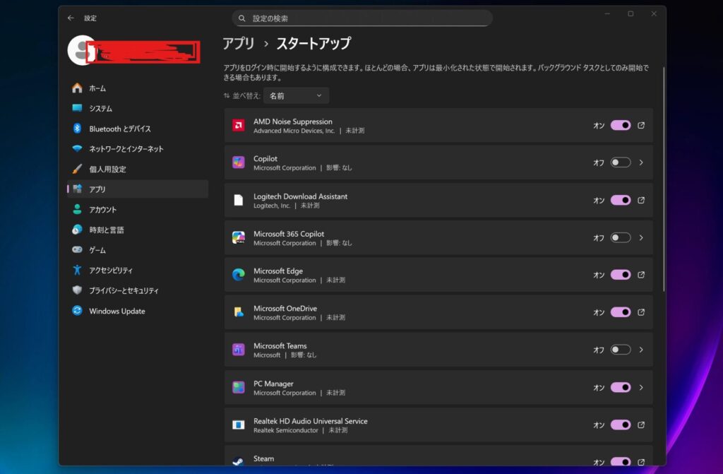 Windows PCは起動時に、多くのアプリやサービスを同時に読み込もうとします。これらの中には、セキュリティソフトやクラウドストレージなど、仕事に不可欠なものもあります。しかし、一度インストールしただけで使っていない画像編集ソフトや、毎日は開かないメッセージアプリなども、勝手にスタートアップに登録されていることが多いんです。
