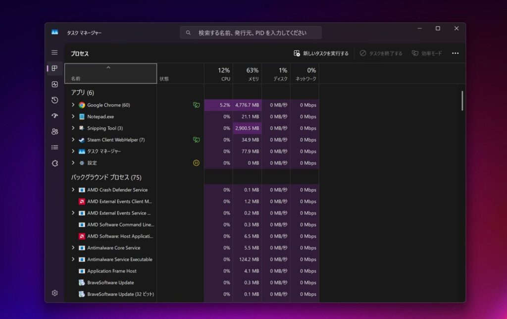 サードパーティ製セキュリティソフトは、常にバックグラウンドでファイルを監視し、定期的にスキャンを実行します。これがCPU、メモリ、ストレージを消費して、PCを重くする原因になるんです。