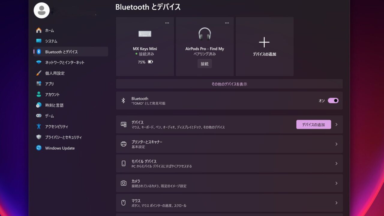 通知領域を見てもBluetoothのアイコンがない。設定画面を開いても、ON/OFFのスイッチ自体が消滅している。まるで最初からBluetooth機能なんて存在しなかったかのような顔をしているPC…。