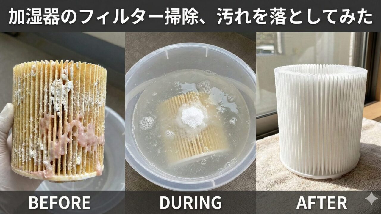 いかがでしたか? 加湿器のフィルター掃除は、ゴシゴシ洗う重労働ではなく、「つけ置きして待つだけの化学実験」です。