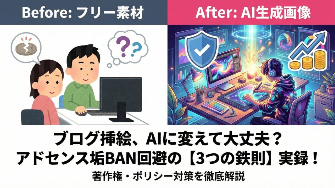 脱いらすとや!ブログ挿絵をAI生成に変えてアドセンス収益は大丈夫?運営者が守る「3つの鉄則」実録