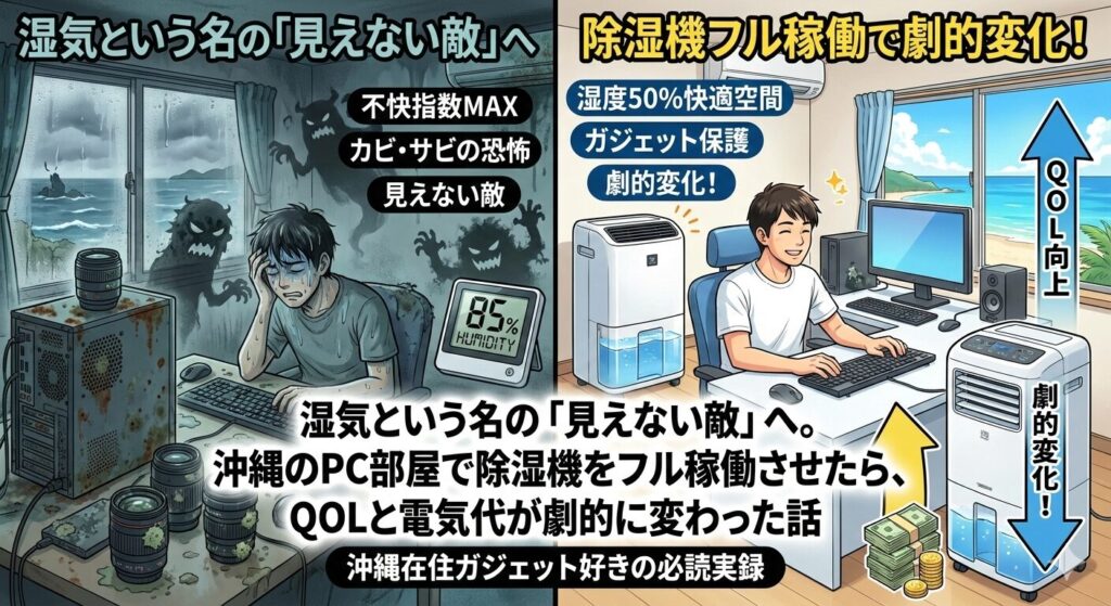 沖縄の湿度はPCの天敵!除湿機24時間稼働の電気代と、資産(ガジェット)を守るコスト論